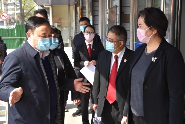 4月21日,开封市中院党组成员、副院长黄冠英带领立案庭、行装处、纪检组一行六人来到鼓楼区法院督导检查诉讼服务中心两个“一站式”建设工作,该院党组书记、院长殷雷萍带领班子成员等陪同检查。