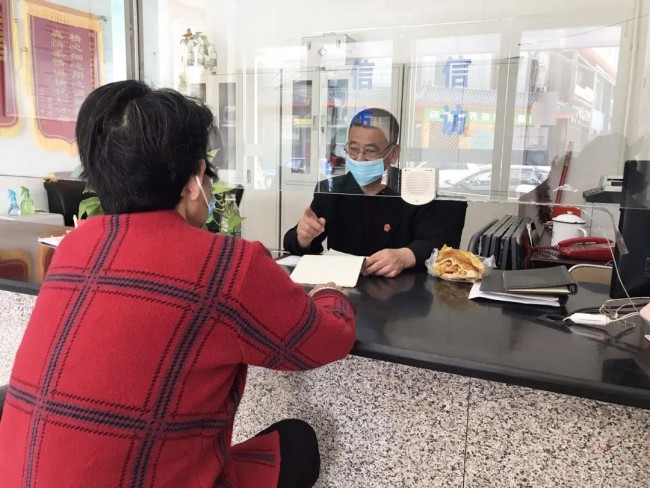 从工地出来,朱老师肚子咕咕叫了起来,为了按时返回办公室,他在街边简单买了个烧饼,刚吃一半,又进来前来询问法律知识群众、了解审判程序的当事人,朱老师放下烧饼,一步一步向他们解答,深入讲解。